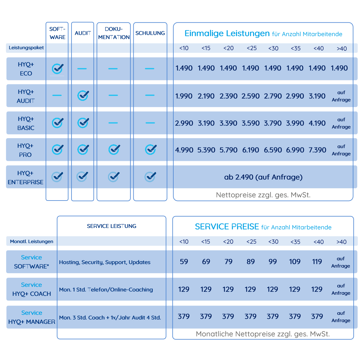 *Software Service ist eine obligatorische Leistung, alle anderen Service Leistungen optional. Alle angegebenen Nettopreise verstehen sich zzgl. Reisekosten (An-/Abreise, Reisezeit, Übernachtung) gemäß unseren Allgemeinen Geschäftsbedingungen und zzgl. der gesetzlich gültigen MwSt.